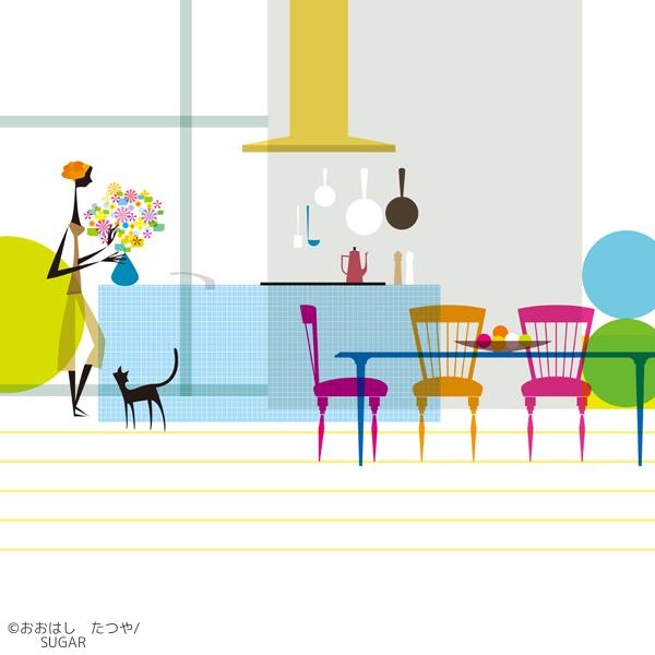 以前家計簿表紙のデザインのひとつとして考えたものです。 ナチュラルな食材で楽しい食卓をイメージしました。