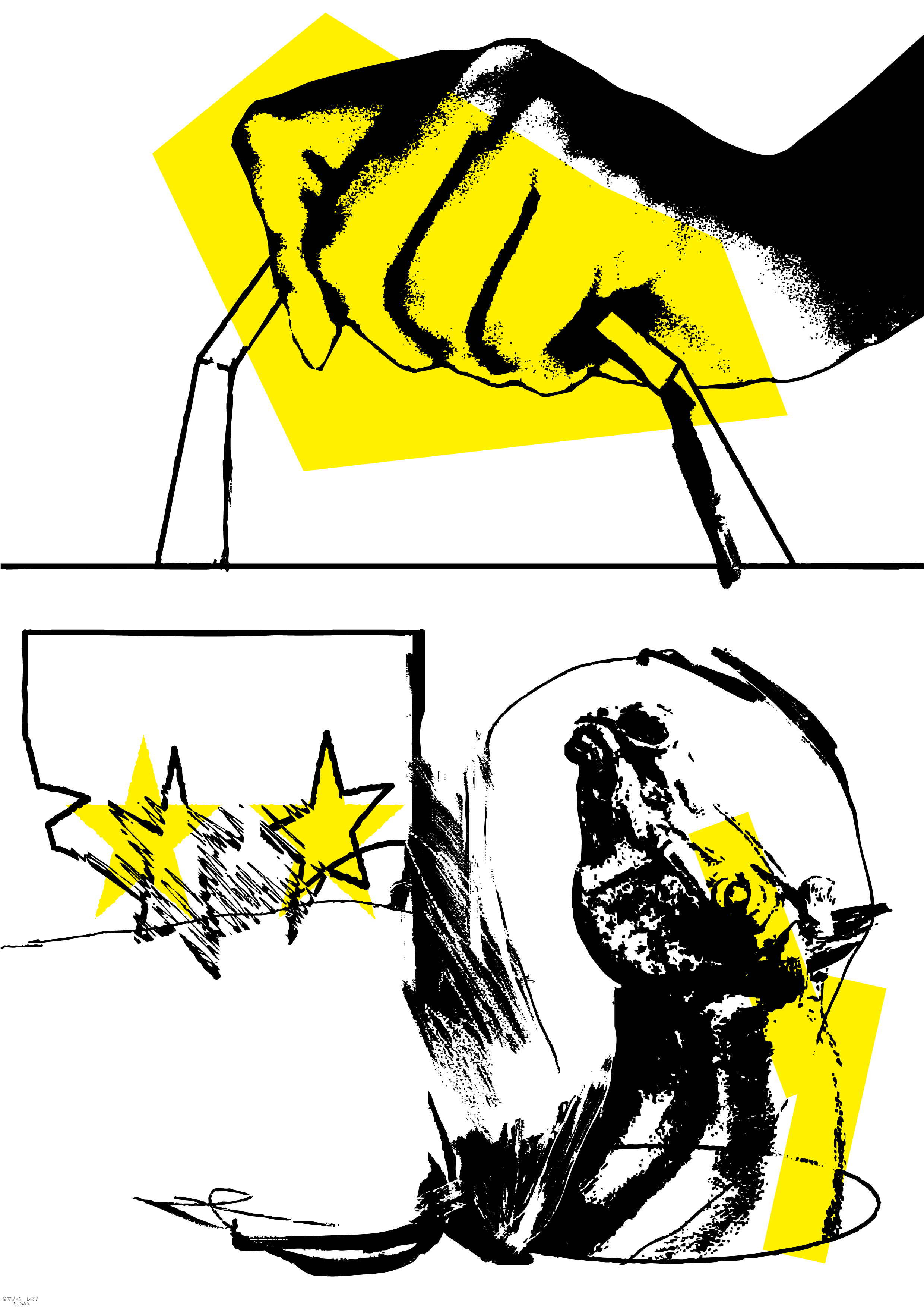 群像2025年8月号掲載 筒井康隆「恐怖の配当」扉絵