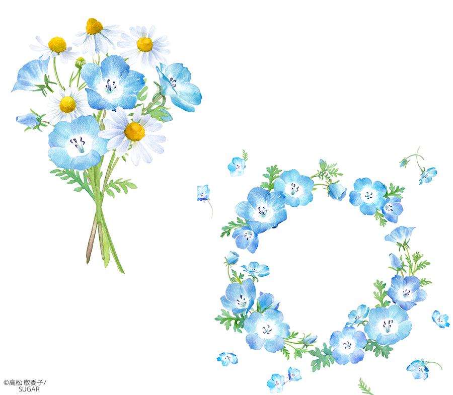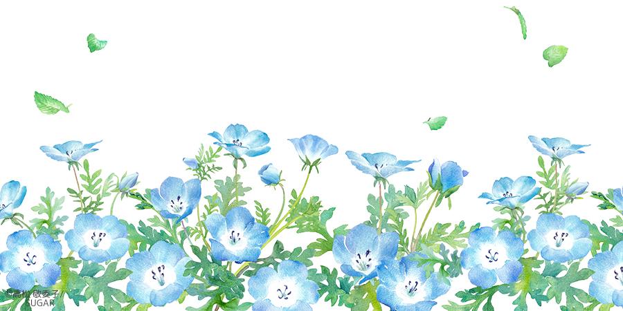 春のフラワーイメージ。ネモフィラの水彩イラスト