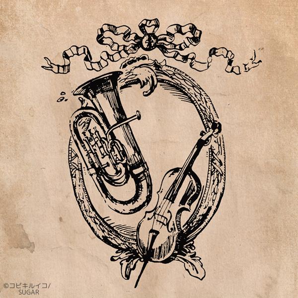 アンティーク調の楽器のイラスト。 18世紀ロココのリボンや銅版画をモチーフに制作。 つけペンで作画し、Photoshopで仕上げています。