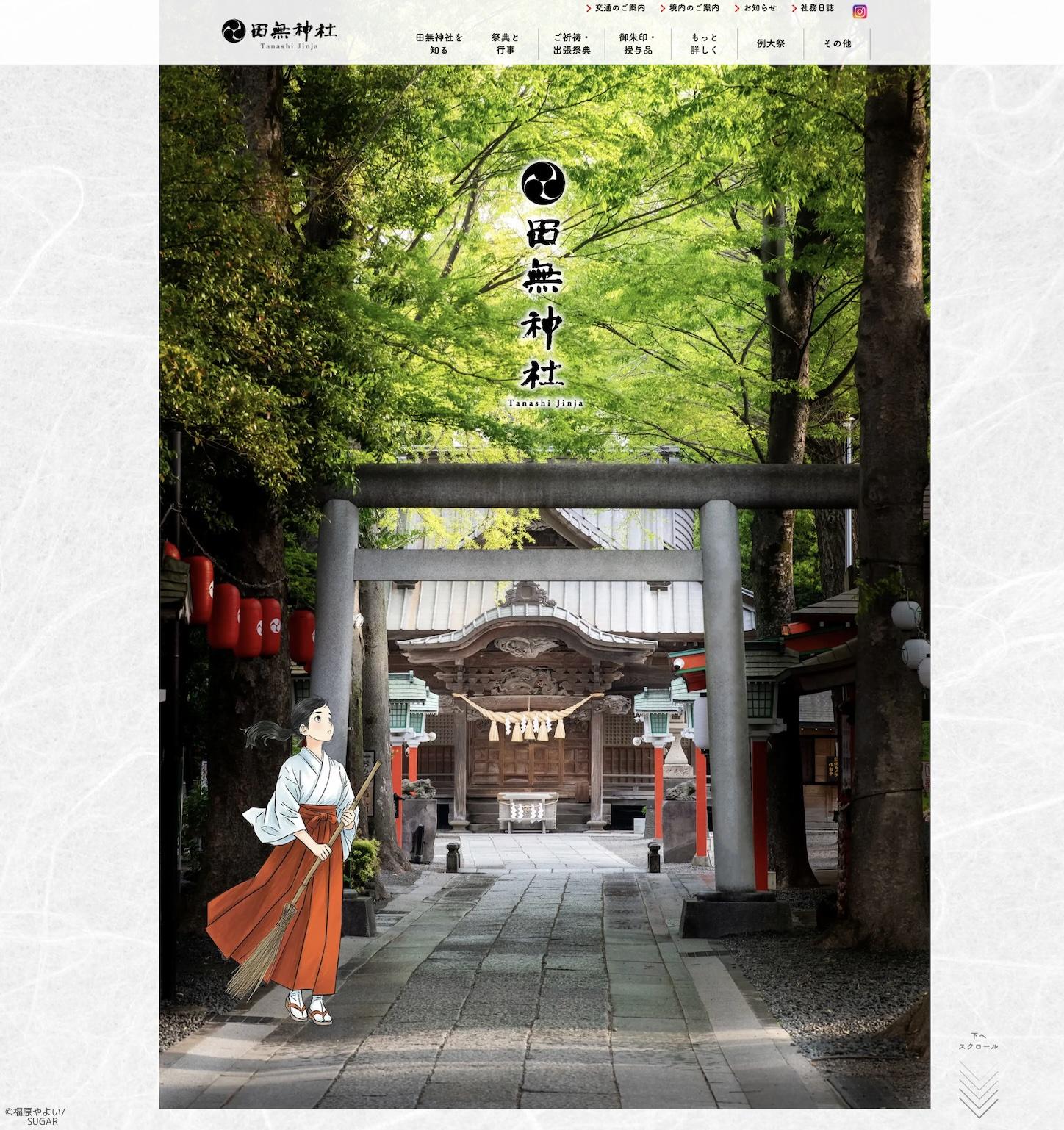田無神社様のHP全般のイラストを作成しました。このイラストはトップページのイラストです。