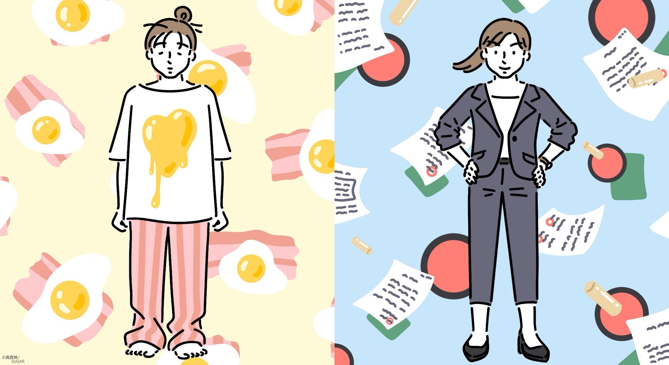 架空の会社「オフィスNC」の男女キャラクター4人組のうち、営業担当さんと広報担当さんのキャラクターです。