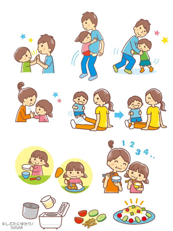 仕事で描いた家族のイラストを集めました。 保育雑誌の保護者のページに使われたものです。 親子の関わり方、遊び、生活などがテーマになっています。