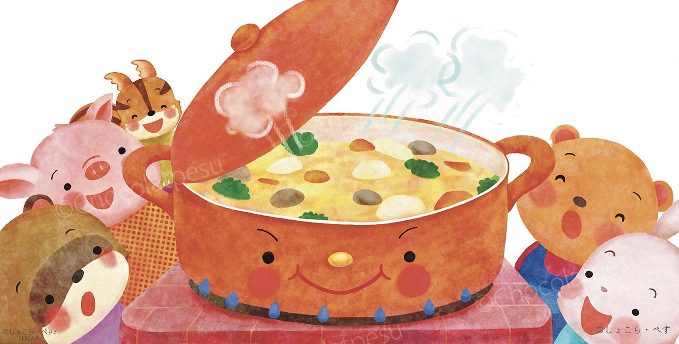 【Works】月刊保育絵本 がっけんつながるえほん『できた』2月号おはなし (株)GakkenSEED様 2026年「さむがりな おなべさん」挿絵(5見開きページ) (デジタル制作)
