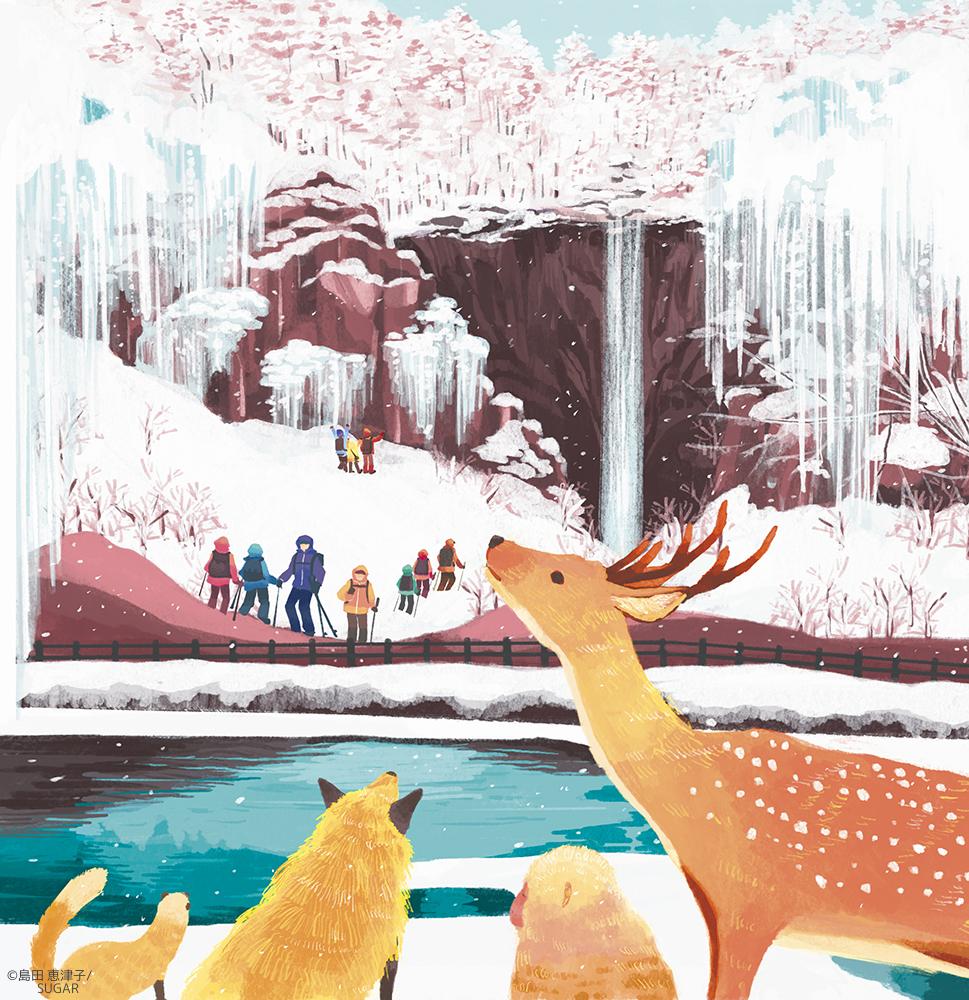 エネルギー会社2024年度カレンダーを担当いたしました。 デザインは、株式会社アクトビューローさんです。 『楽しいを創る原動力』をテーマに、月毎のレジャーシーンを描かせていただきました。 作品の元サイズはA3サイズ横で、スクエア型を含む3タイプに展開されました。 各社企業様のロゴが入り、全国で配布され、 スマホの壁紙とブックカバーもダウンロードできる内容でした。 2月は、かまくらを楽しむ人々を描きました。