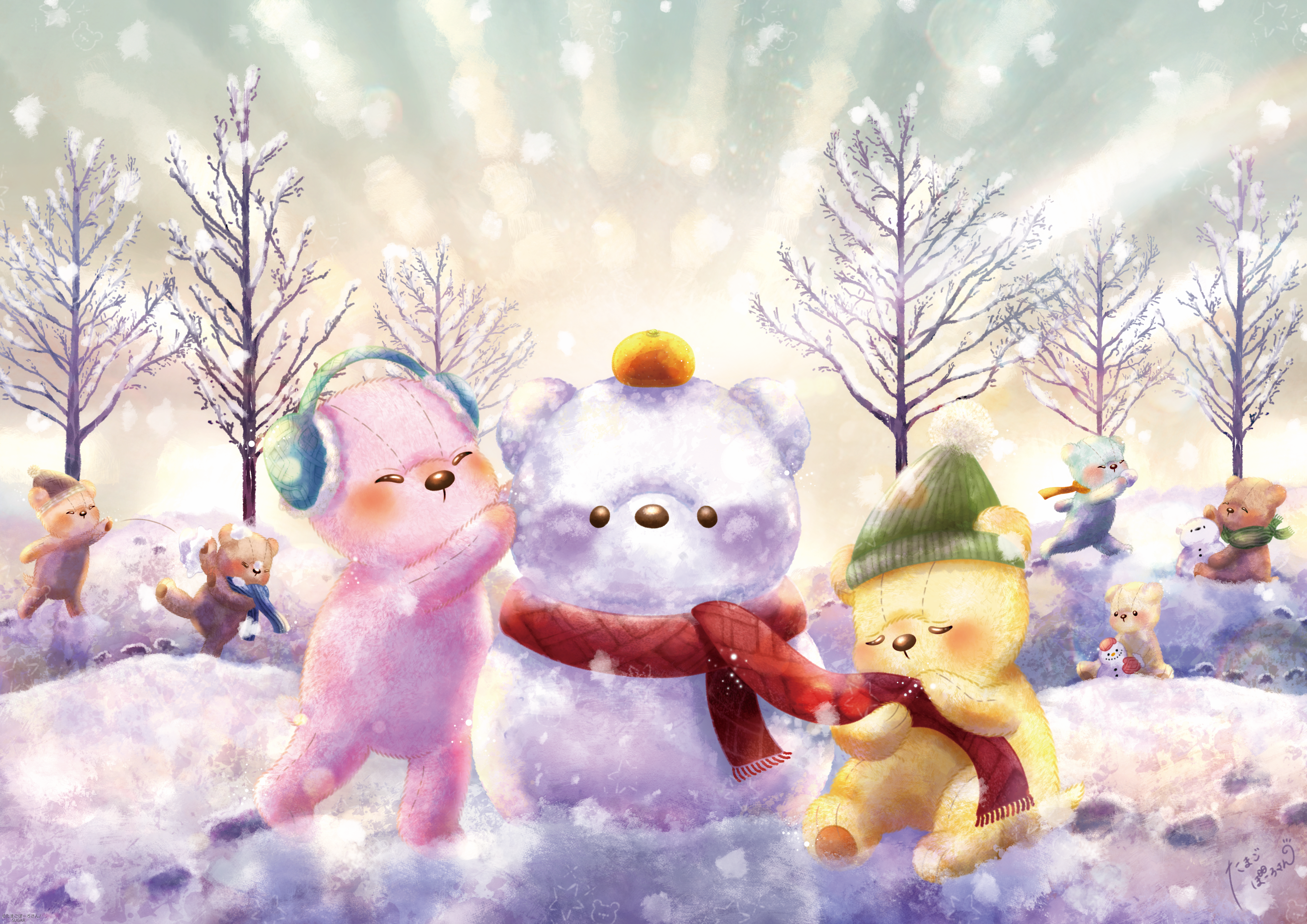 【ゆきあそび】 来年1月のカレンダーに使用するイラストを描きました。雪の質感にこだわり、雪なのにあたたかみのある表現を目指し、制作しました。 ほのぼのとした季節のイラストを描くことが得意ジャンルです◎