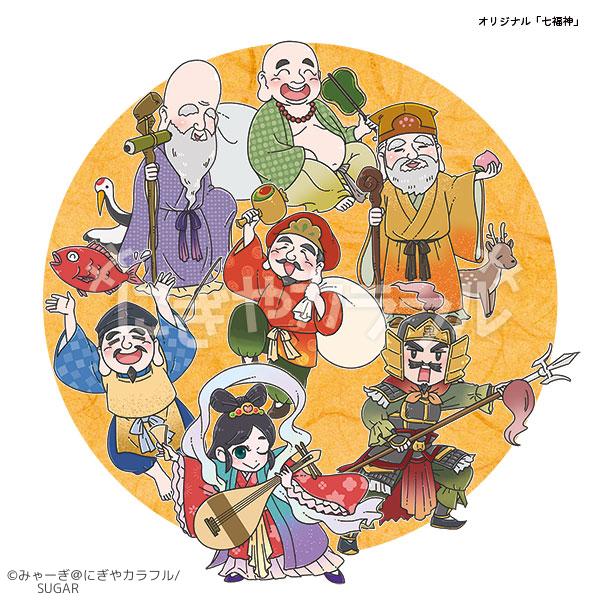 和風テイストのキャラクターと、日本の四季をイメージした背景を描いた作品です。