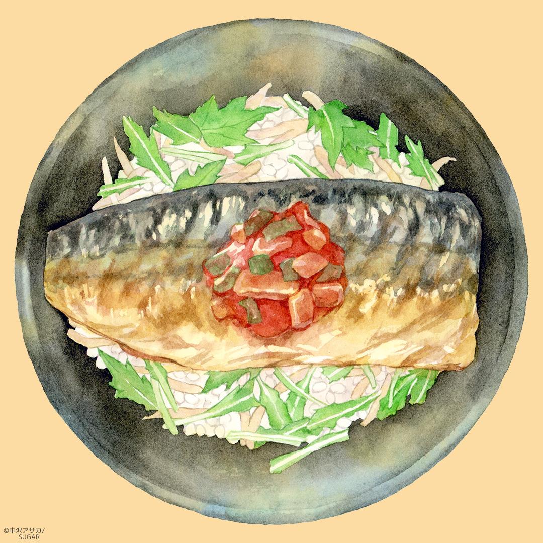 サバメシ専門店様にご依頼をいただき制作した、サバメシの丼のイラストです。看板などにご使用いただきました。