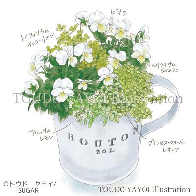 園芸雑誌寄せ植え図コーナーのイラスト。 1年ほど担当していました。 書き文字も合わせ担当致しました。 作業環境・・・・アナログ水彩 納品形式・・・・原画形式