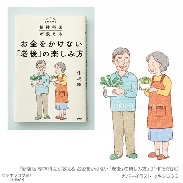 書籍『新装版 精神科医が教える お金をかけない「老後」の楽しみ方』(PHP研究所)カバーイラストを担当しました。 仲良く談笑するシニア世代のご夫婦を描きました。