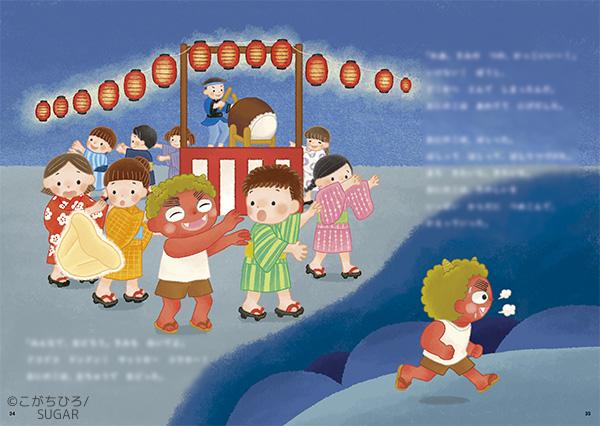 おんどく絵本「頭のいい子が育つ あいうえおんどく」(新星出版社) 「おにのこ おまつりへ いく」の挿絵です。