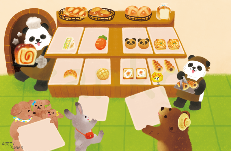 フレーベル館さまキンダーブック32025年 6月号「パンダのパン屋さん」シールページイラストレーション