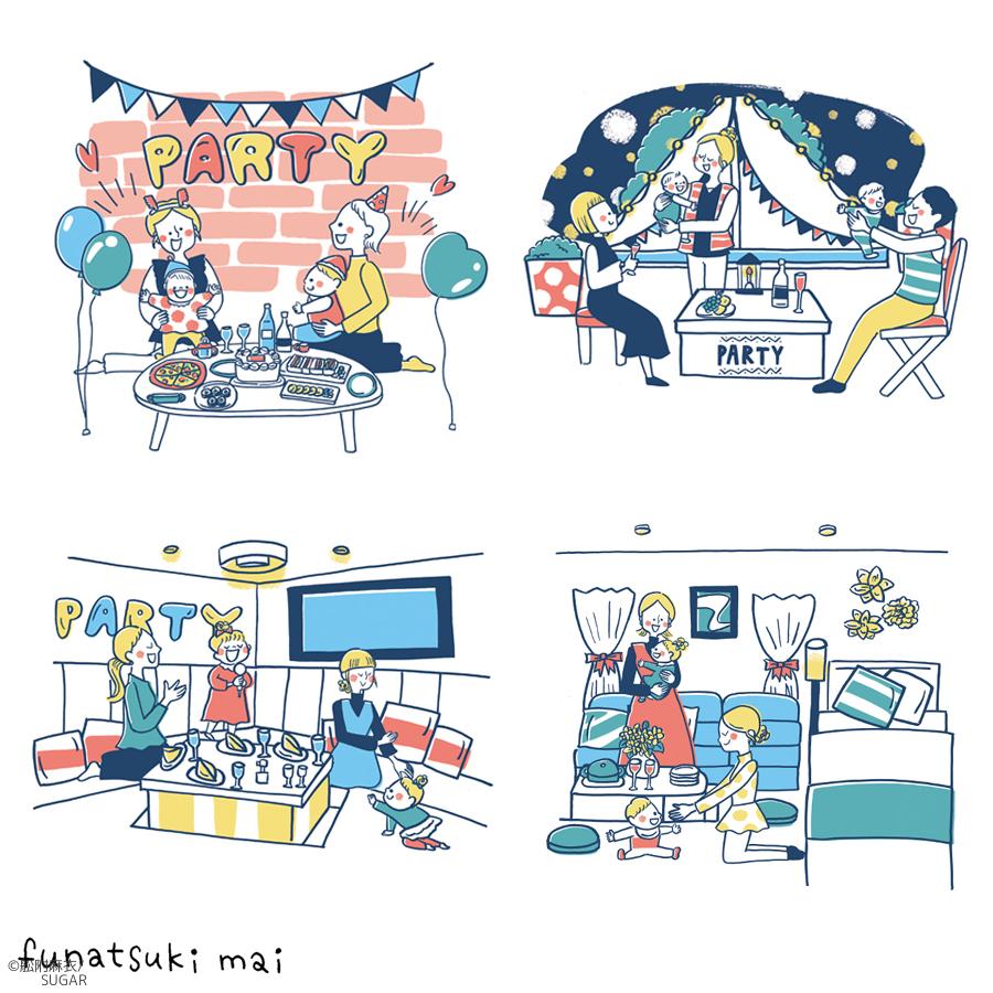 子育て応援情報誌 Happy-Note2023冬号「ラクしてカンタン!冬はみんなでパーティしよう」カットイラスト