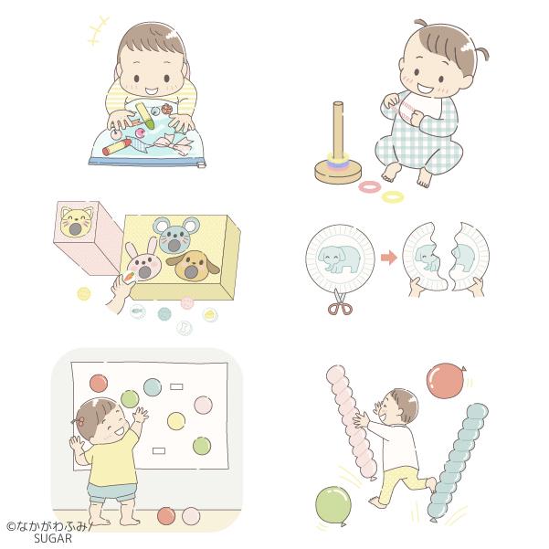 株式会社イオンファンタジー / 0歳からの子育て情報サイト「トットット」掲載イラストを担当しました。 「初めての脳育あそび」に関するイラストを制作しました。( 制作ツール:Adobe Illustrator )