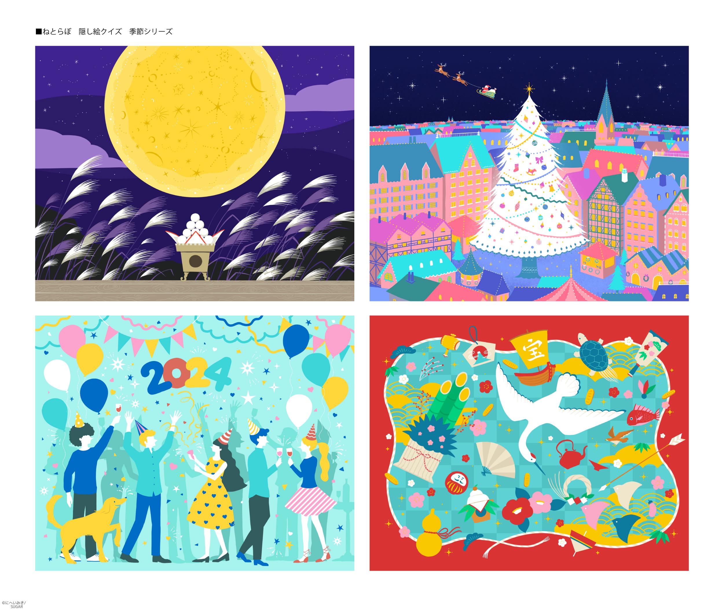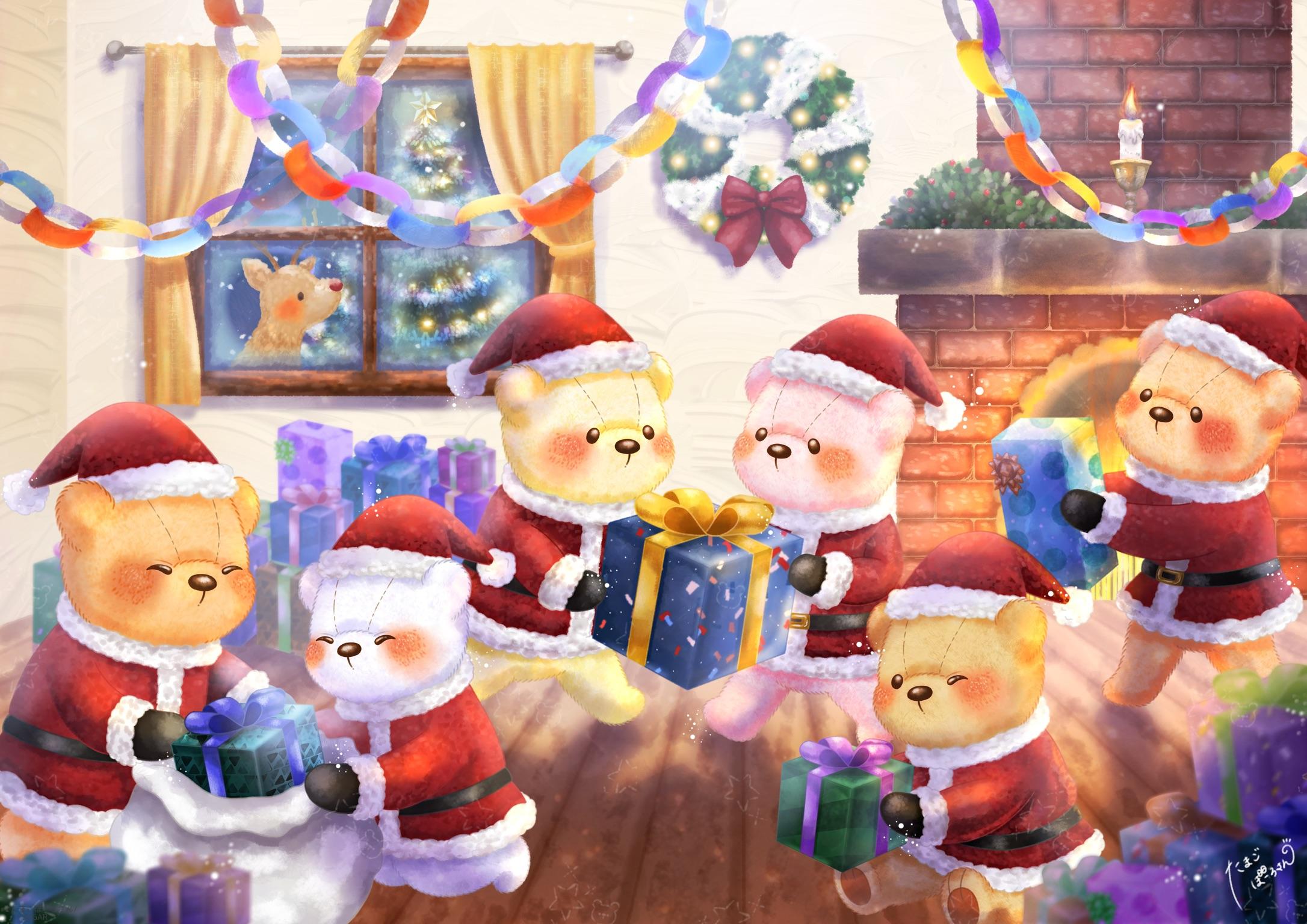 真夏のひまわり畑で、3匹のくまが自然体に夏を楽しむ様子を描いた作品です。