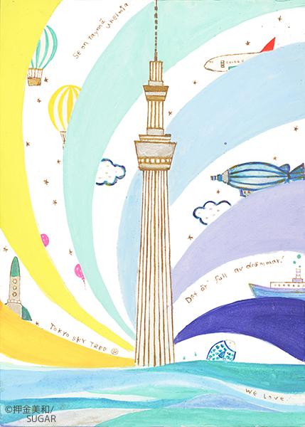 イラストコンペ「東京スカイツリー(R)アート」一次通過、期間展示(2015年) 東京スカイツリーを和のイメージで表現しました。