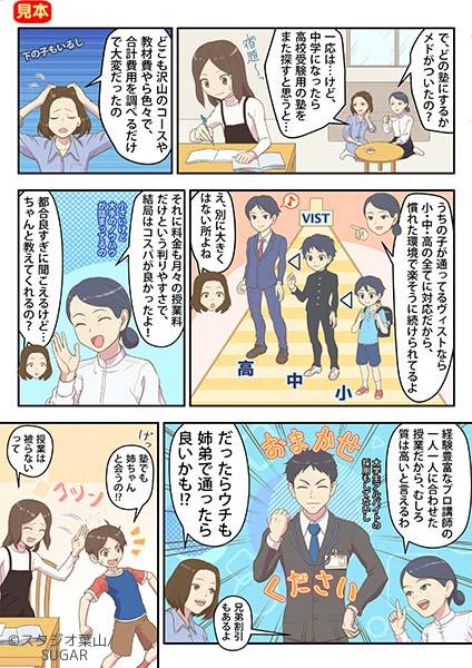 広告チラシ用に制作いたしました、PR漫画です。 普段、漫画を読まない年齢層の方でも読みやすいように、すっきりとした画面と絵柄で構成しております。