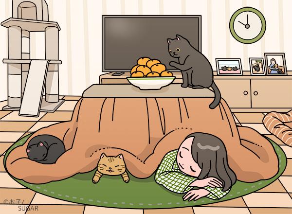 猫ばっかりのオリジナルカレンダーに使用した手描きのイラストレーションです。
