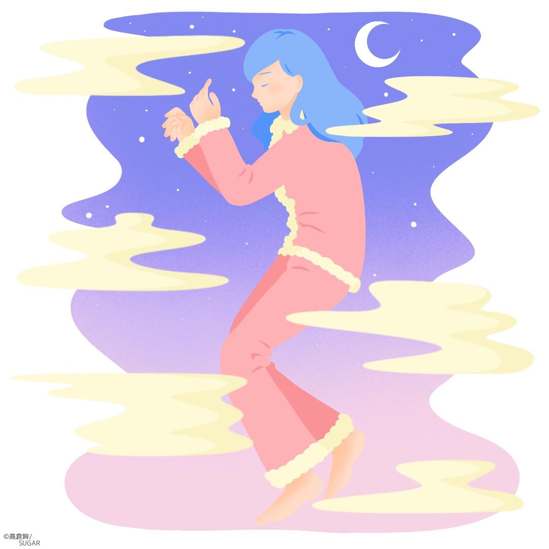 6月16日の「無重力の日」に合わせたイラストです。無重力や深い睡眠をイメージしました。