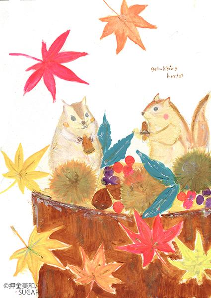 実りの秋の動物たち (企業カレンダー11月イラスト)