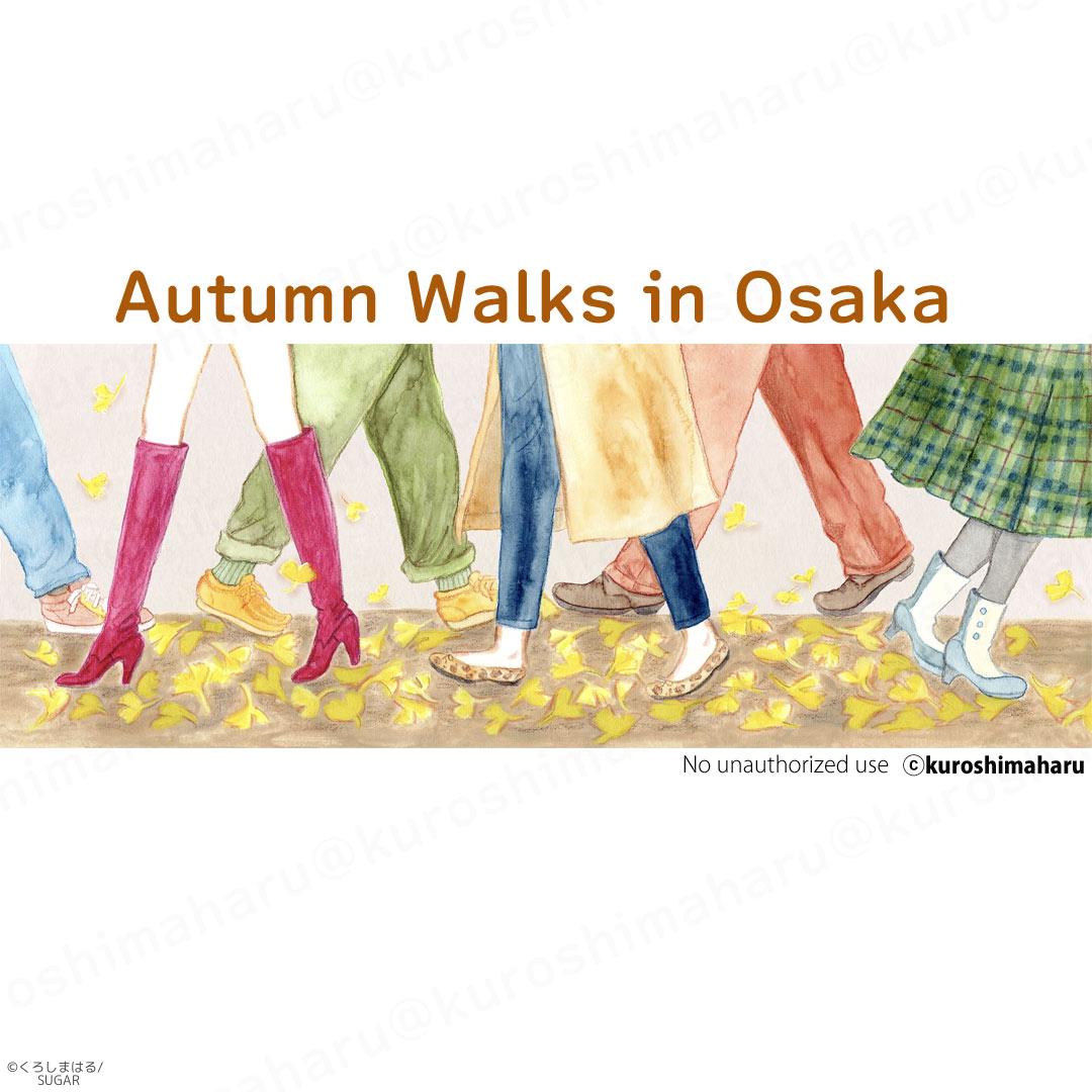 秋を楽しむ人々を描きました。