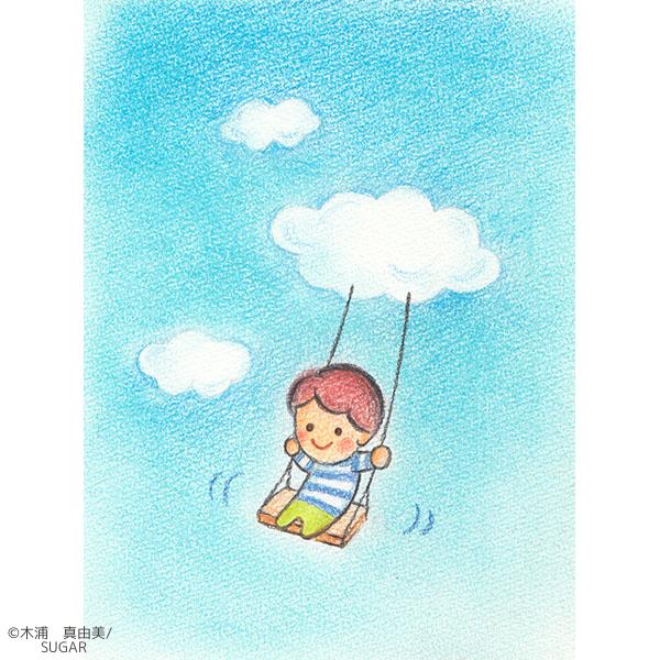 雲からブランコ下がってたら面白いかなと思ってイラストにしました。 ふわふわでゆらゆら、気持ちいいんじゃないでしょうか。 使用画材/パステル、色鉛筆