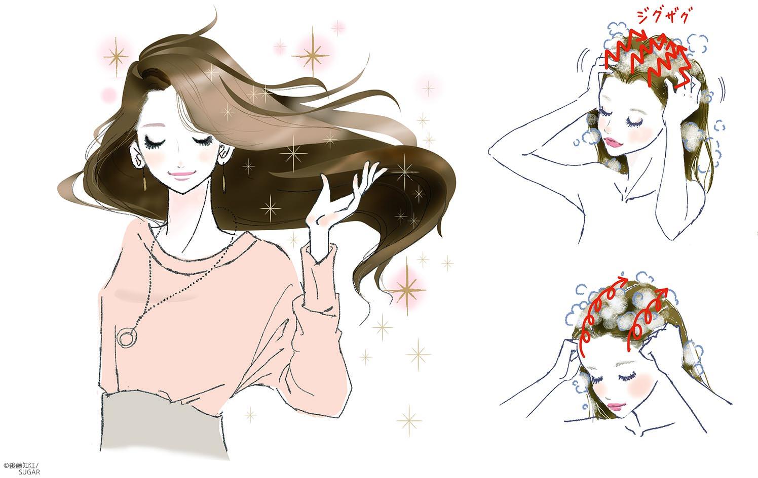 OZIO beauty9月号会報誌でイラストを描きました。 ヘアケアHowtoになります。