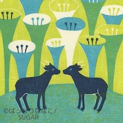 2023年のプライベートの年賀状イラストです。 絵本のようなタッチの花や植物、動物、人物は人気の作風です。