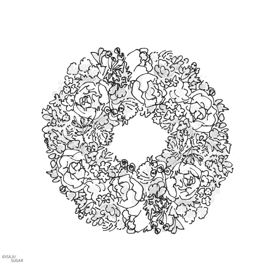クリスマスリースとくま (使用画材:ソフトパステル)