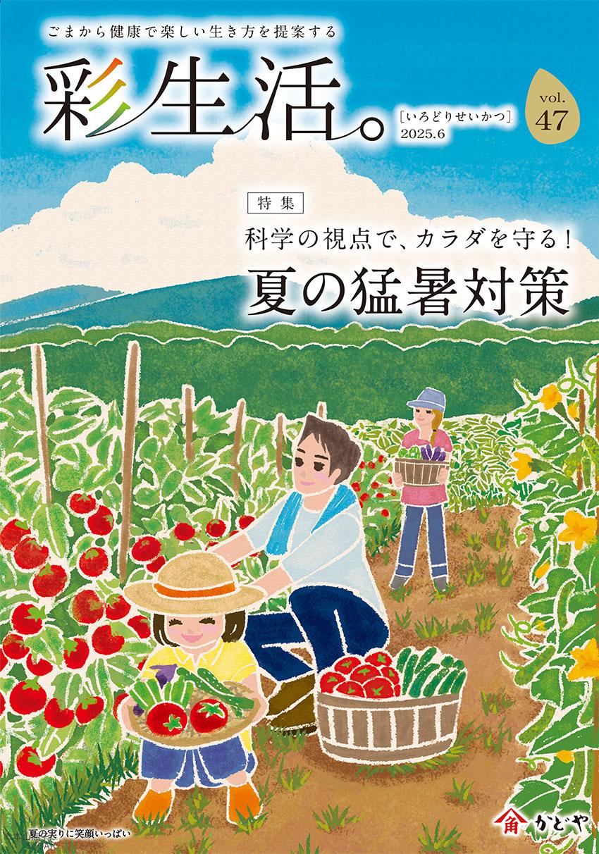 冊子「彩生活。」夏号の表紙イラストを描かせて頂きました。テーマ「夏の実りに笑顔いっぱい」です。家族で夏野菜を楽しく収穫しているイラストを描きました。ポップな色彩で明るく楽しくほのぼのとした雰囲気が伝わるイラストになっていたら嬉しいです。