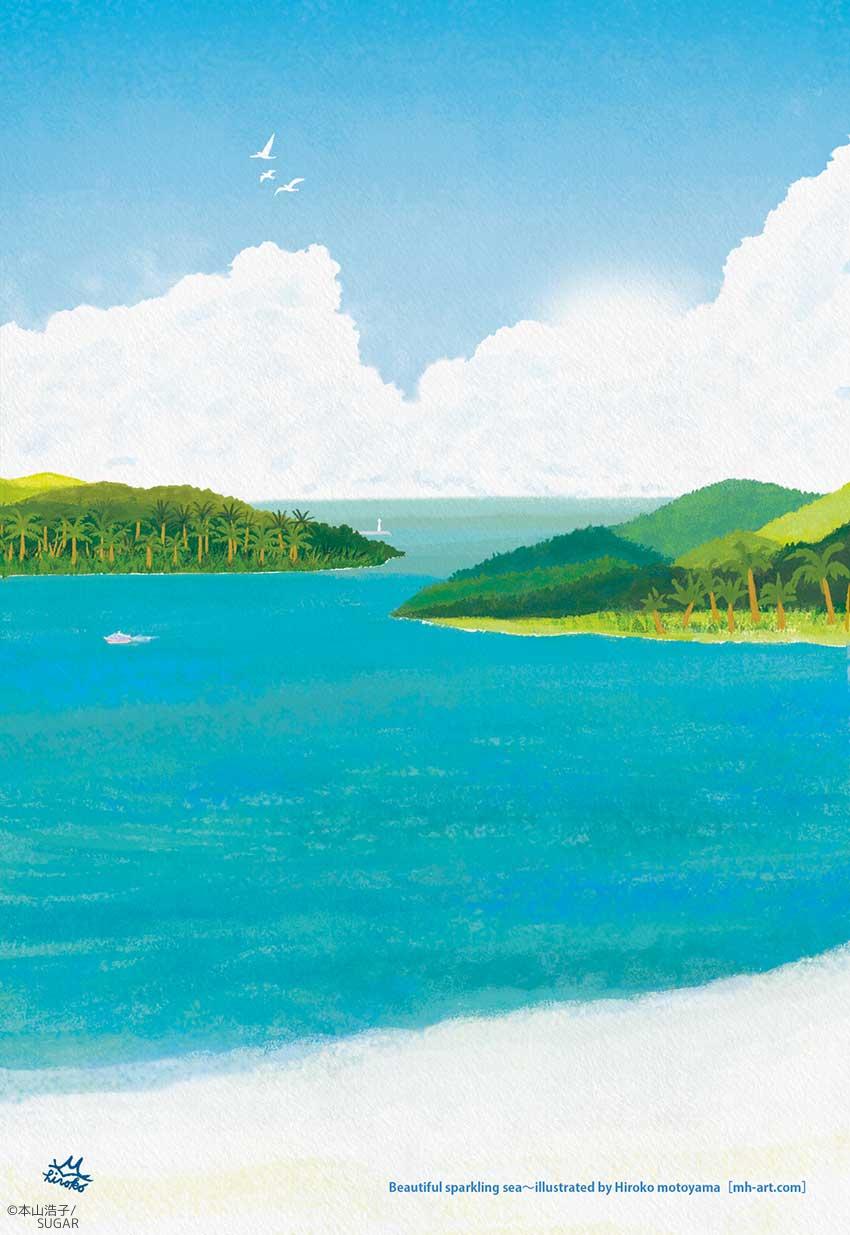 オリジナルイラスト「美しい海」。色々な青色が存在する海、そんな彩りある海を美しく描きました。癒されるほのぼのとした風景のイラストになっていたら嬉しいです。