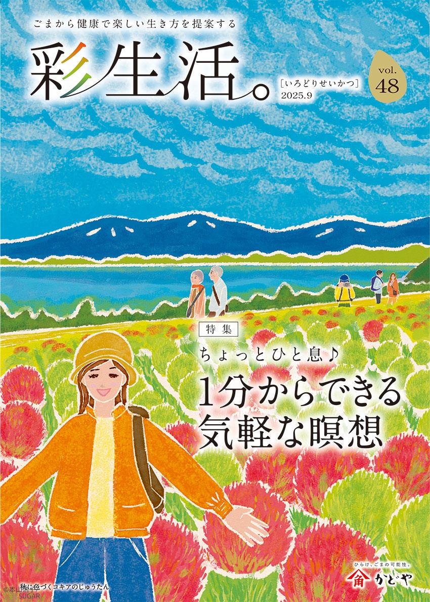 かどや製油様冊子「彩生活。」秋号表紙を描かせて頂きました。 「秋に色づくコキアのじゅうたん」のイラストです。