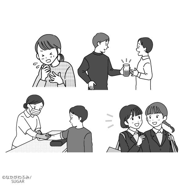 日本学校保健研修社 月刊『健』1月号 巻末とじこみ用カット 【高校生向け】ストレスとの上手な付き合い方についての記事に掲載するイラスト8点を担当しました。 制作ツール:Adobe Illustrator