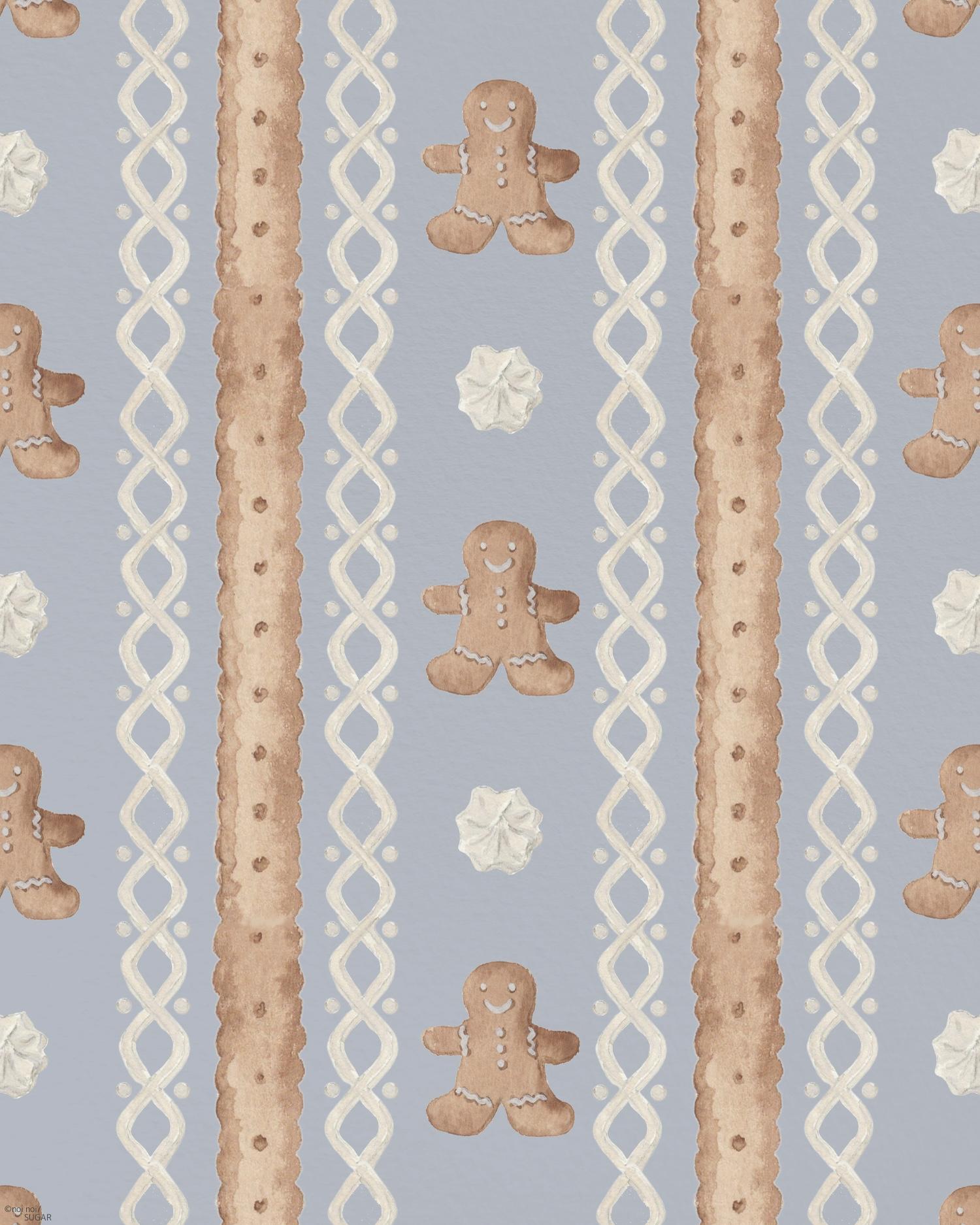 ジンジャーマンクッキーをホリデームード溢れるパターンデザインにしました。 ラッピングやパッケージ、WEB背景などにおすすめです。
